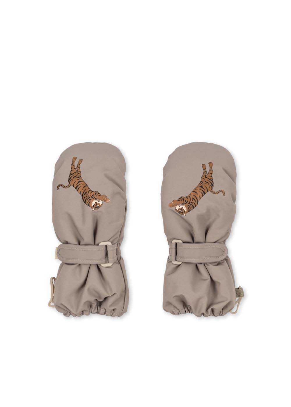Mit verstellbaren Handgelenken und einem doppelten Karabinerhaken zur Befestigung der Fäustlinge an der Jacke.