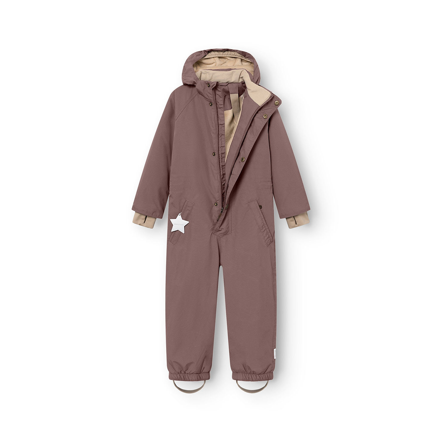 - Der Anzug ist großzügig gefüttert und bietet im Rumpfbereich sowie in der abnehmbaren Kapuze ein weiches Fleecematerial, das für wohlige Wärme sorgt.
