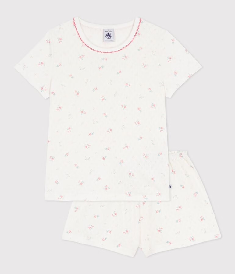 Kurzpyjama für Mädchen aus Baumwolle mit Lochstickerei, ein weicher, leichter und super bequemer Stoff.